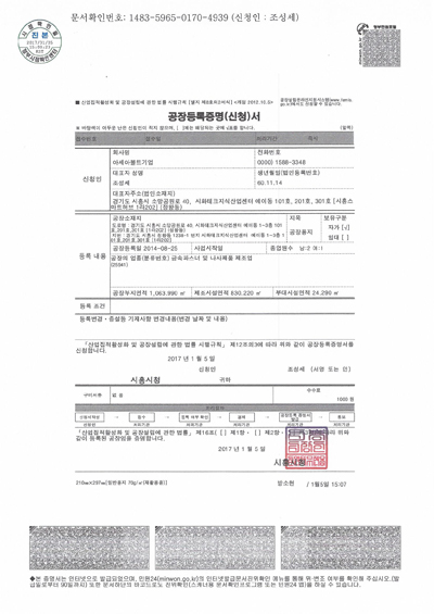 아세아볼트기업-공장등록증